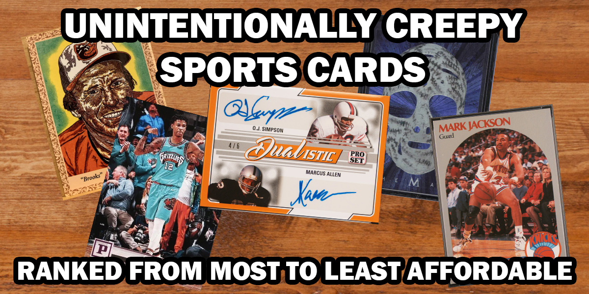 Although it’s a much smaller market with far less available product, another area of interest of mine is unintentionally creepy sports cards. Anyone can crank out a set of cards depicting serial killers or horror movie villains for the sake of shock value.