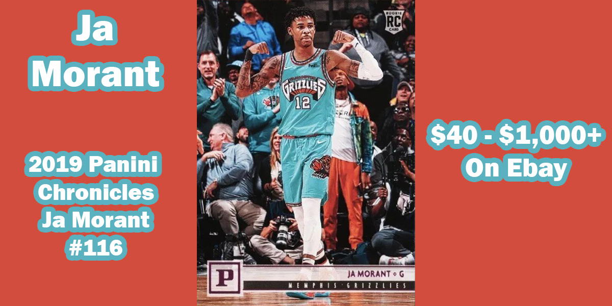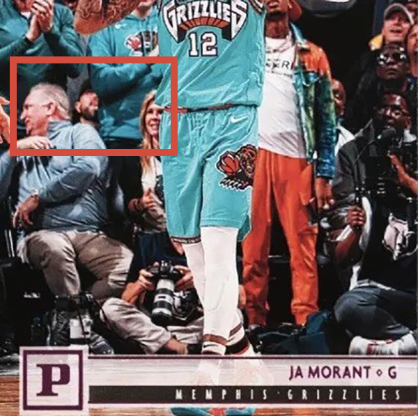 The 2019 Panini Chronicles #116 Ja Morant rookie card is also famous for tragic reasons. The gentleman in the orange pants positioned directly under Morant’s armpit is Memphis rapper Key Glock. Good news! He is alive and well!